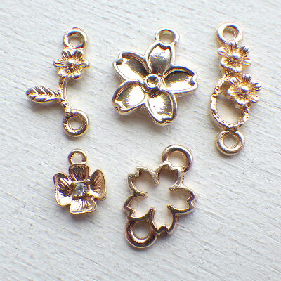 【メール便可】【10個入り】アクセサリー作製に♪花のミニ透かしチャーム★ゴールド★ミニメタルプチ/小さ目サイズ/花/フラワー/桜/さくら/サクラ/薔薇/ローズ/ハイビスカス/極薄/メタルパーツ/ネイル/レジンクラフト/ハンドメイド/手芸
