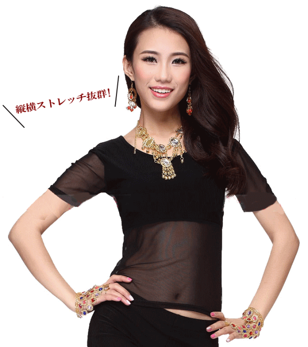 シースルー Tシャツ 着痩せ ダンス トップス へそ出し 半袖 ショート丈 ストレッチ レッスン着 ベリーダンス 衣装 ヨガウェア ダンス レッスンウェア 社交ダンス フィットネス ヒップホップ ジャズダンス 赤 青 紫 ピンク ブルー レッド ミカドレス cr142-mcv2