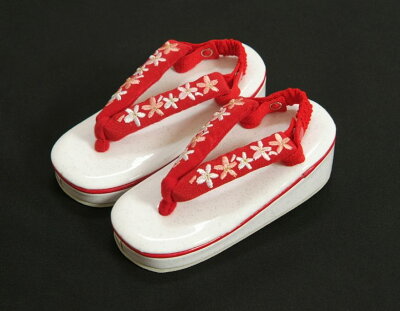 ※染め物ですので細かい染料とび(気にならない程度の物)はご了承下さい 白地の判に赤い鼻緒を挿げた七五三の3〜5歳くらいのお子様に最適な草履の単品です!! 鼻緒は刺繍使いになっていて見た目の豪華もあります!! かかとは高さが4.5cmくらいしっかりとあります!! 付属のバックバンドはホックで簡単に着脱可能です!!