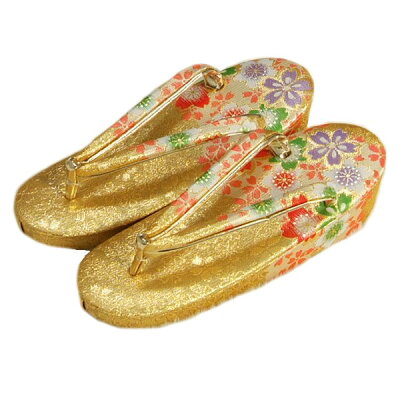 七五三 草履単品 7歳用 金襴地色 四季桜文様 かかと一枚芯 大サイズ 日本製