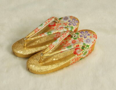 ※染め物ですので細かい染料とび(気にならない程度の物)はご了承下さい 金襴地色のベーシックな七五三の7歳くらいのお子様に最適な草履の単品です!! 織生地張りなので履き心地は合皮に比べると柔らかくなり痛くなりにくい作りです!! かかとは一枚芯ですが高さもしっかりあります!! 収納する箱もお付けいたします!!
