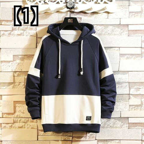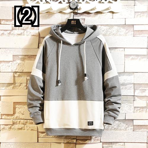 パーカー メンズ おしゃれ 韓国 無地 大きいサイズ プルオーバー シンプル ツートン 春秋 紺 グレー