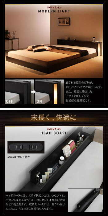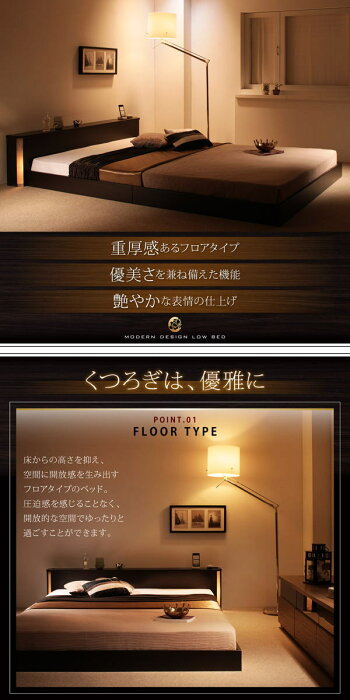 モダンライト フロアベッドダブルサイズフレームの単品(マットレスは付きません) 【関連ワード ダブルベット ローベッド ベッドフレーム 宮付 棚付 スノコ すのこベッド ヘッドボード付き モノトーン ウレタン塗装 オシャレ モダン】