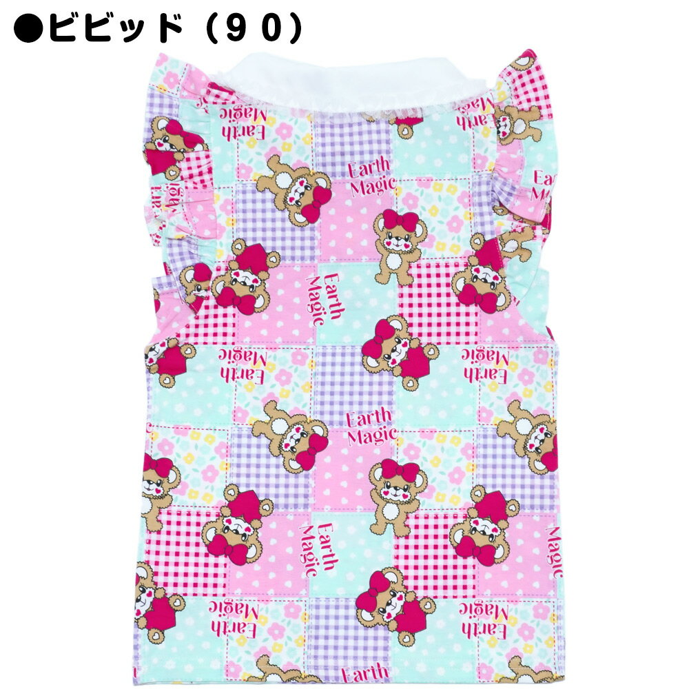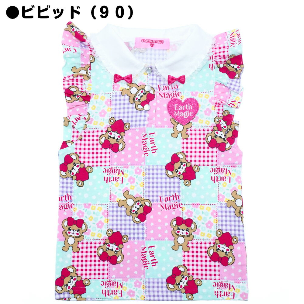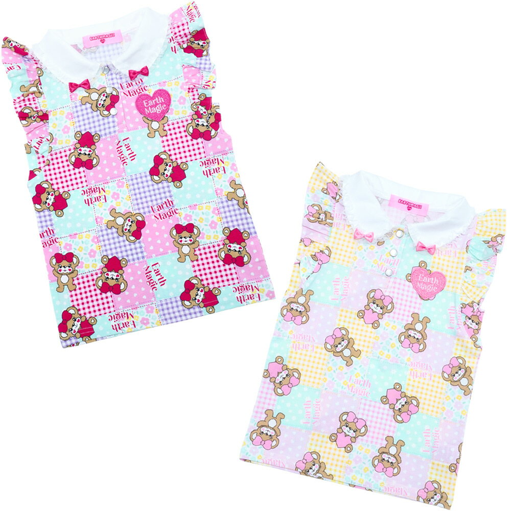 【正規取扱店】EARTHMAGIC【30%OFF】アースマジック 2022春夏 パッチワーク総柄襟付きTシャツ ビビッド パステル マフィー ポロシャツ 袖フリル ノースリーブ 女児 女の子 子供服 キッズ トップス 100 110 120 130 140