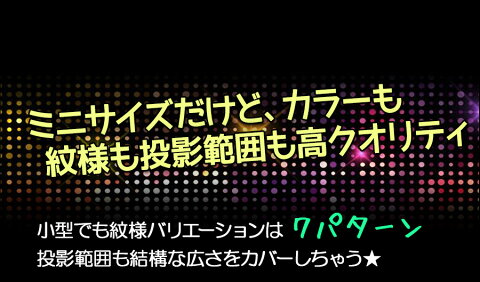 小さいので持ち運びも便利! ■カラーも紋様も投影範囲も高クオリティ 小型でも紋様バリエーションは7パターン。