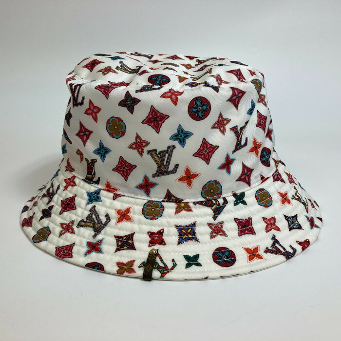 LOUIS VUITTON ルイヴィトン M76719 ボブ ラブリーグラム 帽子 2021SS ハット ナイロン ユニセックス ホワイト×マルチカラー 新品同様 【中古】