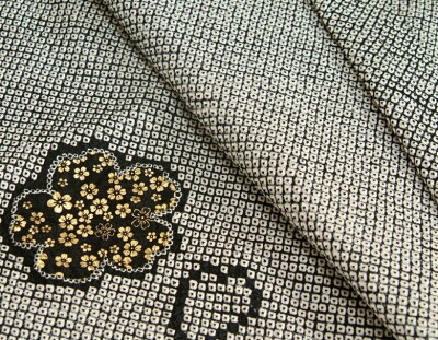 七五三 着物 7歳 着物セット 正絹総本手絞り 黒色地着物 ベージュ金襴桐生織帯セット 雪輪蝶 足袋に腰紐など21点フルセット