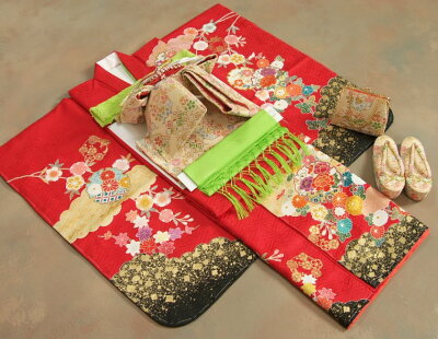 商品情報 商品番号 k7fush-11 商品内容 正絹着物 帯 帯飾り紐 長襦袢 重ね衿 草履 バッグ 帯〆 箱セコ 扇子 ビラカン 正絹帯揚 しごき 白足袋 子供用腰紐3本 刺繍半衿 着付け解説DVD 肩上げ(希望者のみ) 色目 着物 赤色帯、バッグ、箱セコセット 金襴有職文様 帯揚、しごき 4色の中から選べます刺繍半衿 2色の中から選べます 素材 【着物】絹100%、【胴裏、長襦袢】ポリエステル100%【帯】ポリエステル95%、ナイロン5%【箱セコセット】ポリエステル、合皮【帯揚げ】絹100%【しごき】ポリエステル100% 着物寸法 対象年齢 おもに6歳〜8歳くらいに対応します対応身長 約110cm〜135cm身丈約134cm袖丈約76cm裄丈約59cm 草履寸法 草履判サイズ 6〜7歳用 約21cm(足のサイズ約19cm〜21cmくらいに対応します)かかと高さ 約4.5cm ご注意 ※生地の裁断位置により多少柄の出方が変わることがございます※店舗での並行販売も行っていますので箱に多少の汚れがあります。