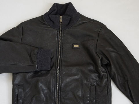 ドルチェアンドガッバーナ dolce&gabbana D&G ドルガバ アウトレット 子供服 男の子 9歳 10歳 約 130cm 140cm 長袖 革ジャン ブルゾン ジャンパー 黒 羊皮 アウター 秋 冬 ★