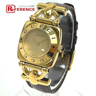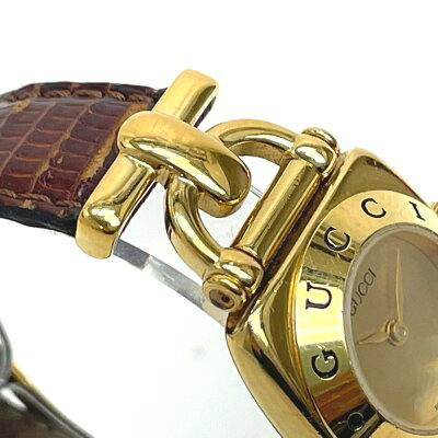 GUCCI グッチ 6300L ロゴベゼル ホースビット 腕時計 GP /レザーベルト レディース ゴールド×ブラウン 【中古】