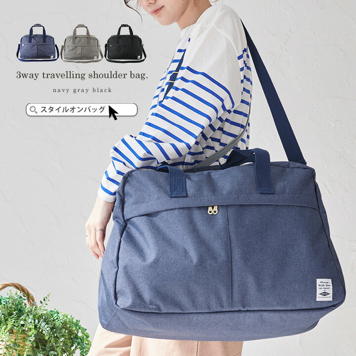 ボストンバッグ レディース バッグ ショルダー 3way 大容量 多収納 軽量 軽い A4 大きめ 旅行 修学旅行 部活 出張 肩掛け 斜めがけ 丈夫 トラベルバッグ ハンドバッグ ジム ファスナー ポケット メンズ キャリーオン シンプル おしゃれ 男女兼用 大人 スタイルオンバック